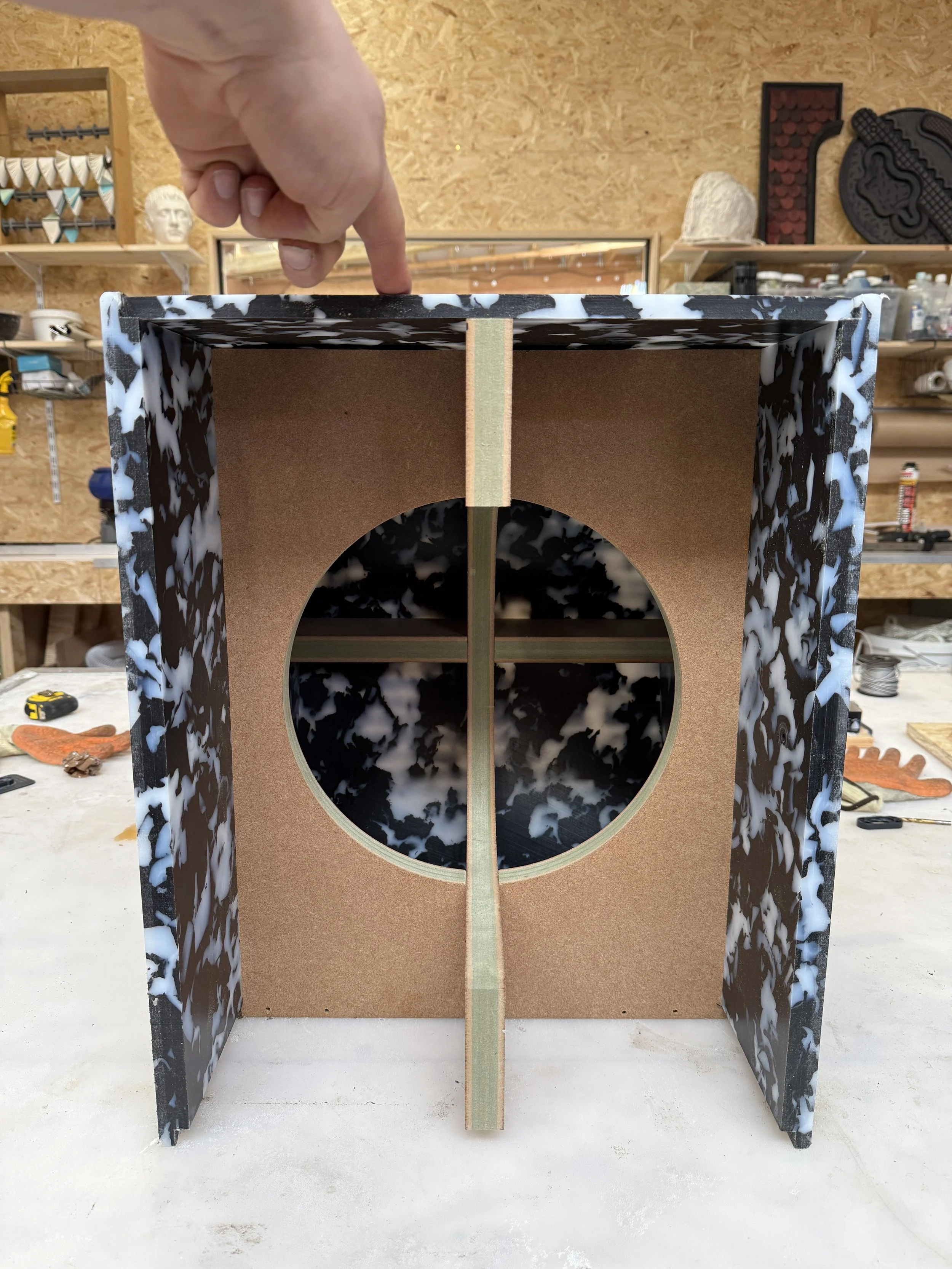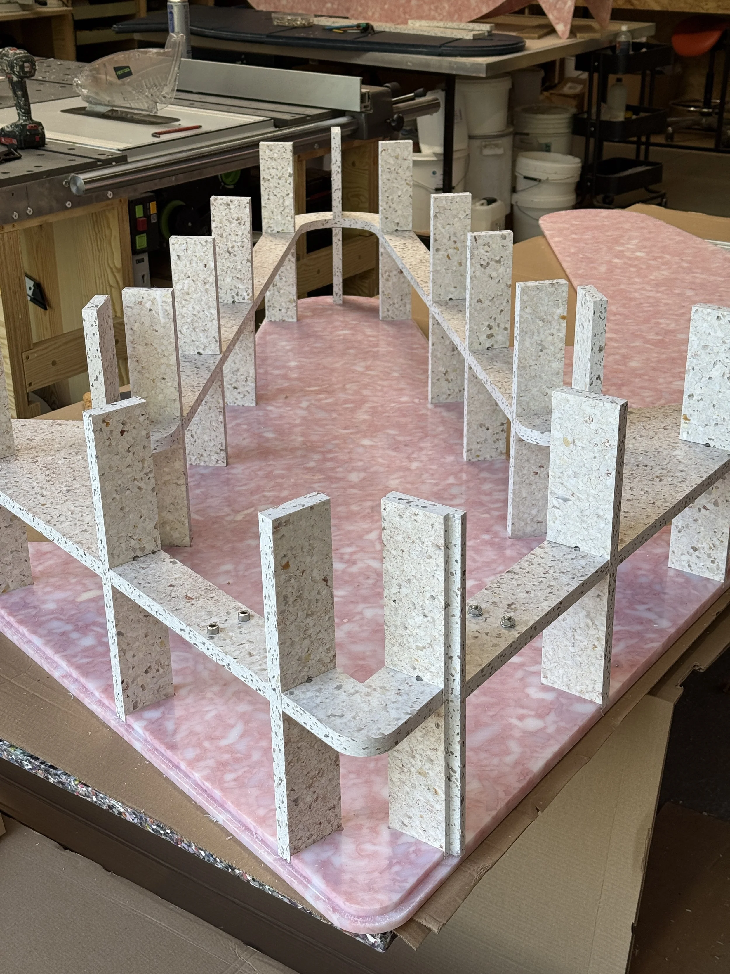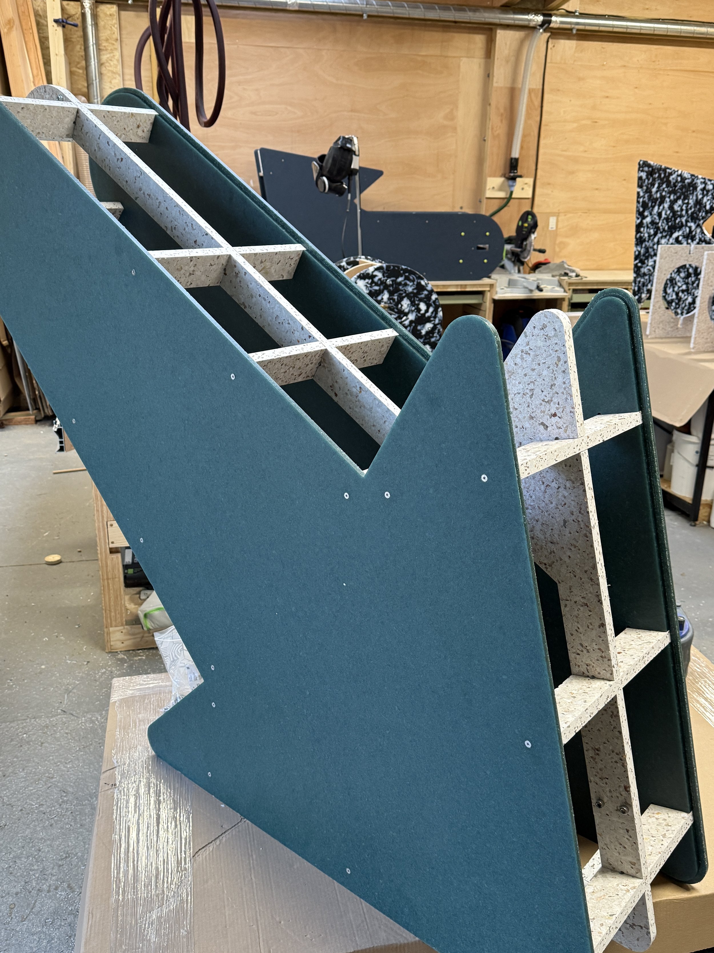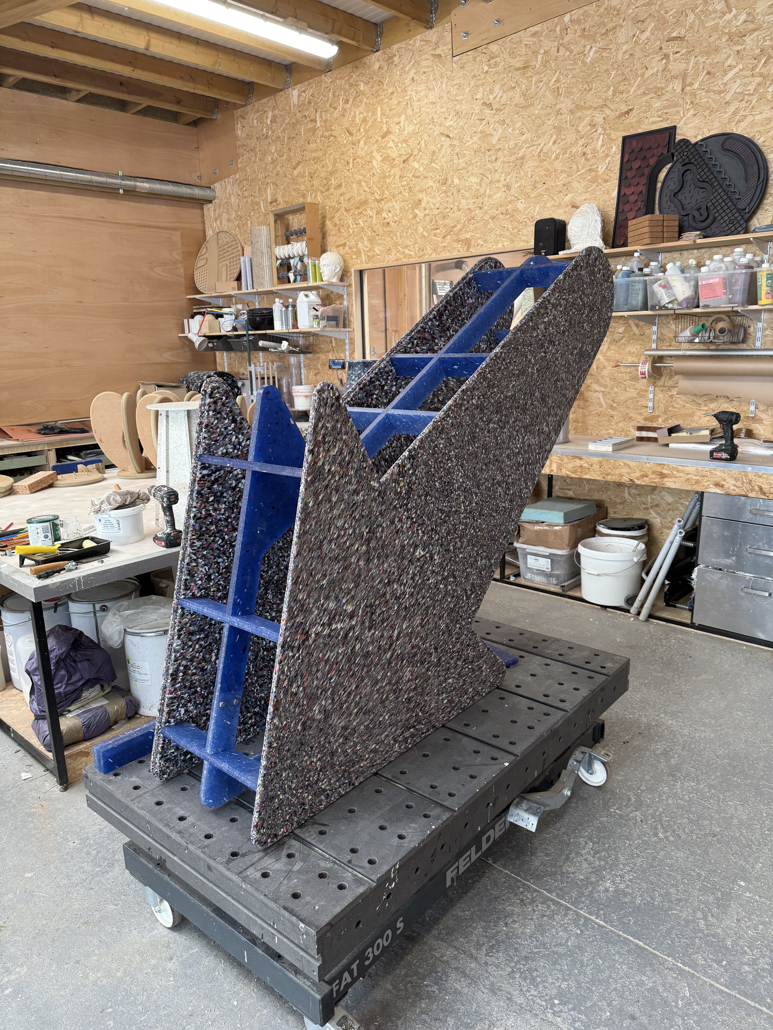 The brief was to create a series of 10 large scale reusable plastic arrows, which could be used as both way-finding and public furniture. Principall designed for Clerkenwell Design week 2025, the arrows are designed with reusable and removable signage elements so they can be used across London Design events. All arrows were designed to be made entirely with recycled plastic, including the internal structure made from rejected 20mm panels.