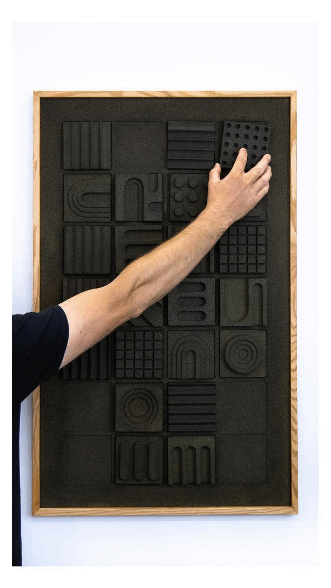 The ANYWAY relief series in painted cork, 3 x 3 configuration.